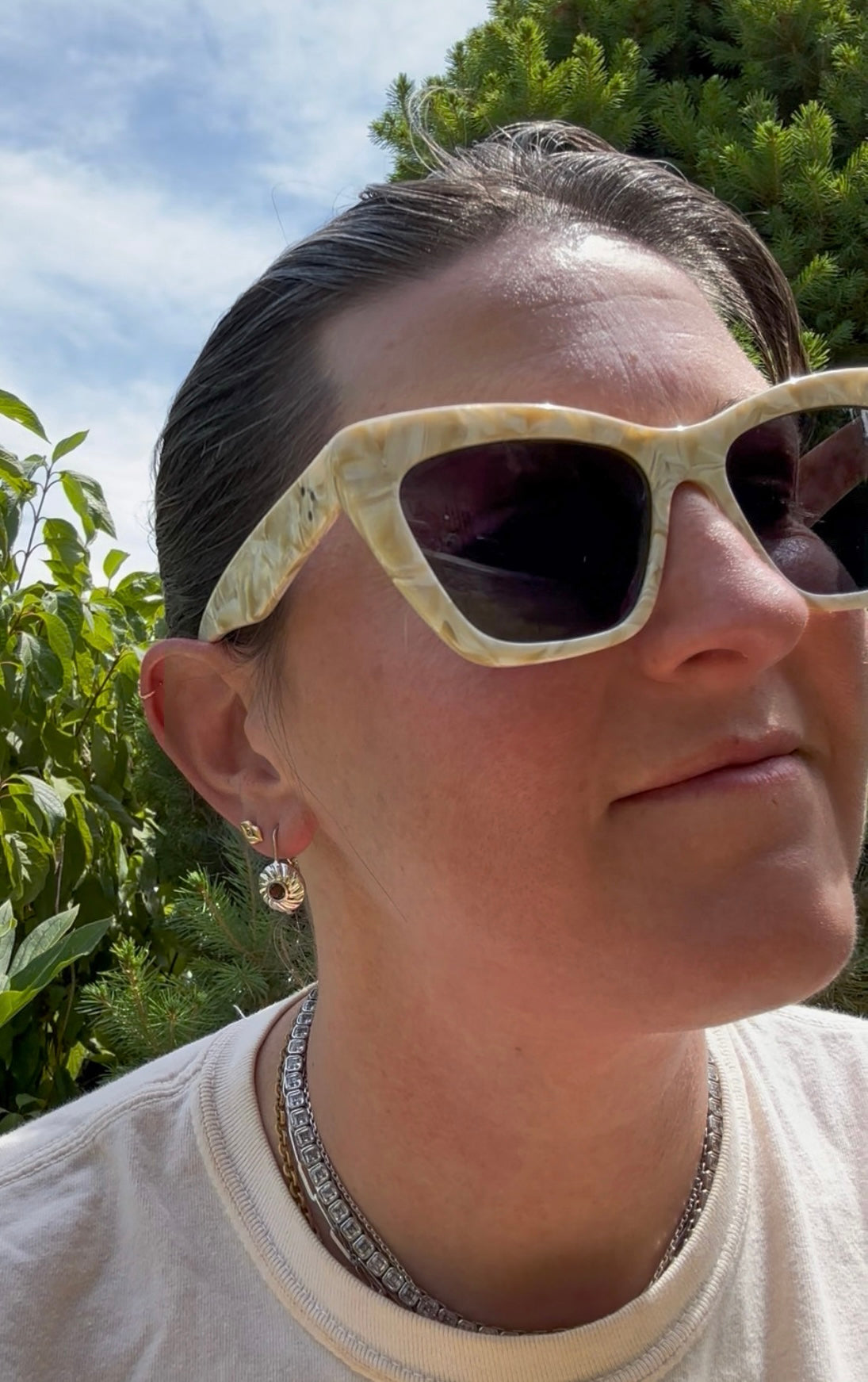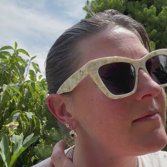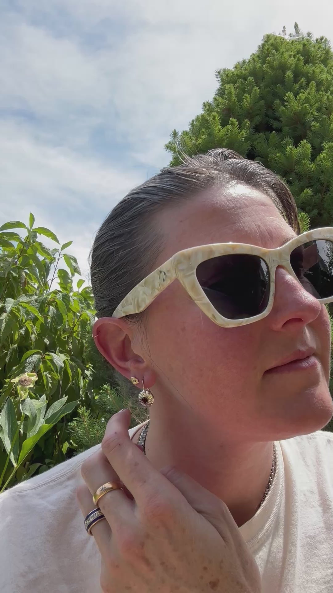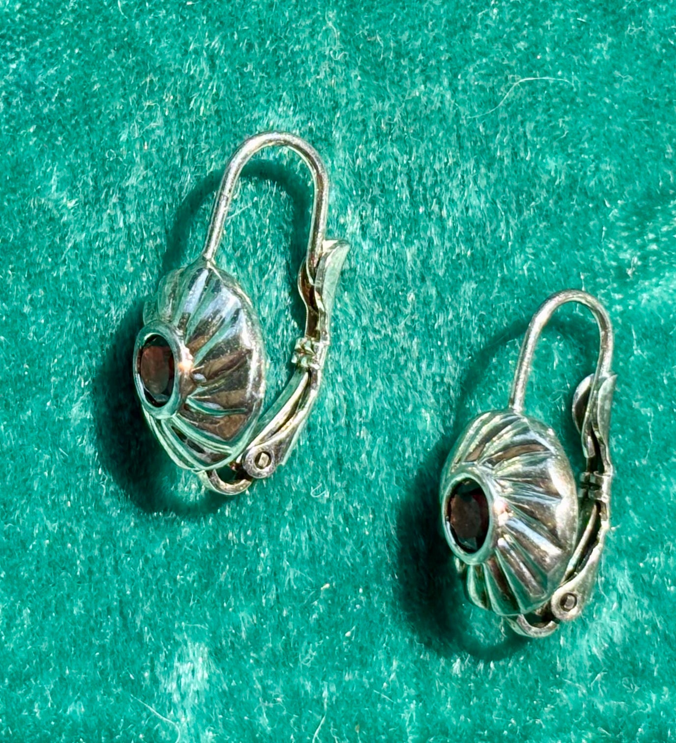 Swirls of sterling silver wrap snugly around little round faceted garnets. The garnets are a deep cherry red color and very yummy looking. These little drops are very sweet and easy to wear. I can’t help thinking about the movie Elf while looking at these-