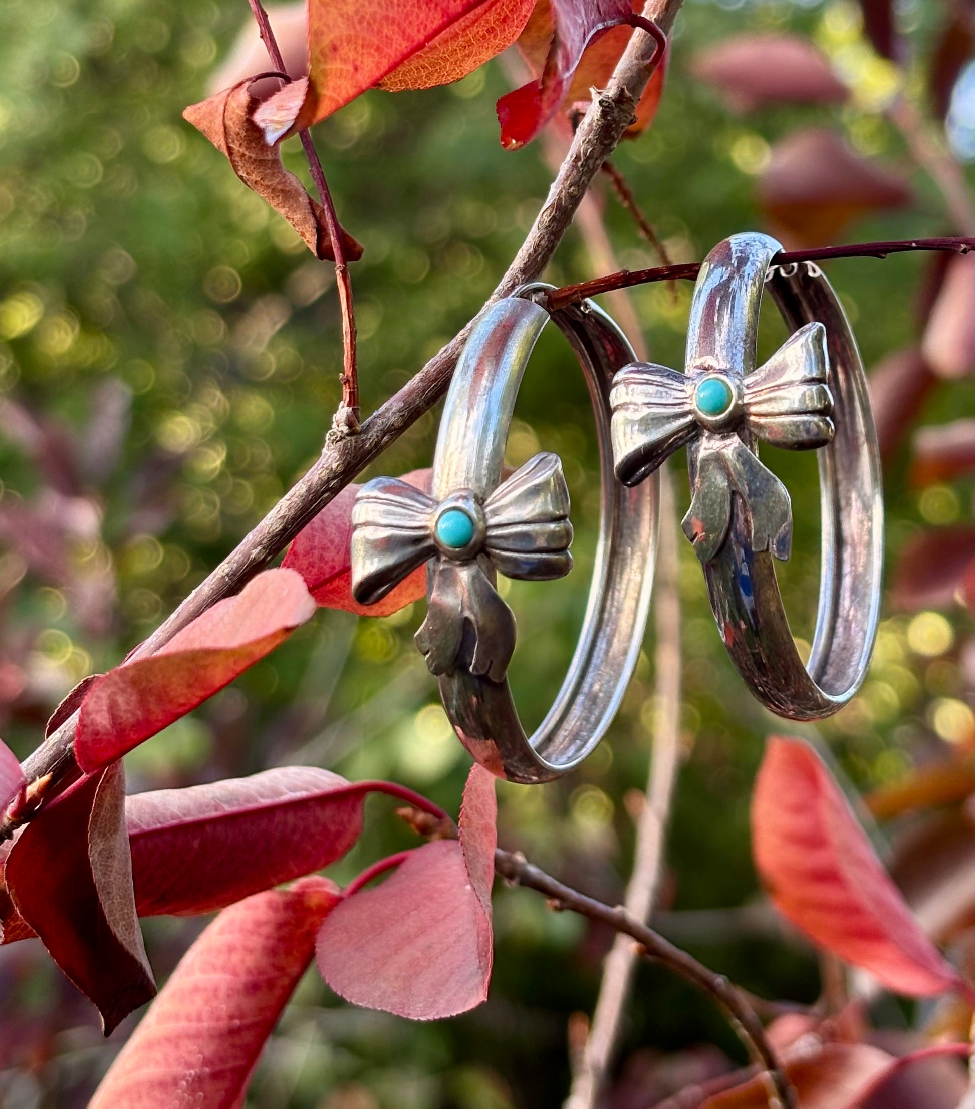 These sterling silver hoops make quite a statement! They are medium-plus size, approximately 2 inches in diameter, so - not small, but because of the cute bow detail, they feel cute and almost a little demure, actually!